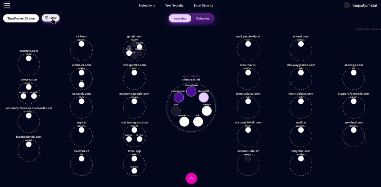 Отслеживайте веб-трафик и почтовые потоки через продвинутый визуальный интерфейс.